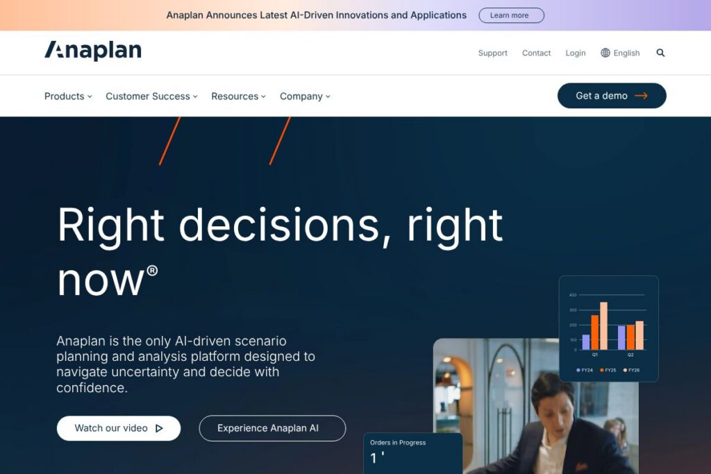 Anaplan is a connected planning platform built for enterprise decision-making, scenario planning, and integrated forecasting. The platform combines multi-dimensional modeling, real-time calculation, and AI-assisted insights to let finance, operations, and commercial teams test scenarios, align plans, and update forecasts from a single model.