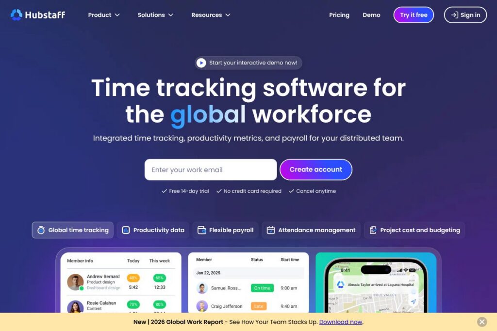 Hubstaff excels at combining multi-device time tracking with productivity metrics and payroll automation, making it a practical choice for distributed teams that need both accurate hours and operational visibility. Its strengths are automated timesheets, attendance controls, and integrations that reduce manual payroll and billing work.