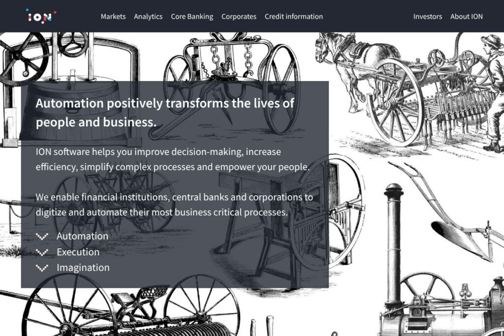ION builds automation software aimed at financial institutions, central banks, and large corporations to digitize and automate high-value back-office and front-office operations. Its portfolio covers payments, treasury, trading, risk and compliance, and workflow orchestration designed for environments with high transaction volumes and regulatory needs.