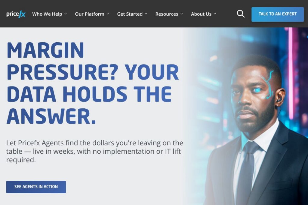 Pricefx ingests transactional, product, customer, and market data from ERPs, CRMs, and commerce systems, then applies AI Agents and optimization models to identify margin leakage and pricing upside. The platform can run continuous scans of price and order data to highlight prioritized actions for pricing managers and sellers.